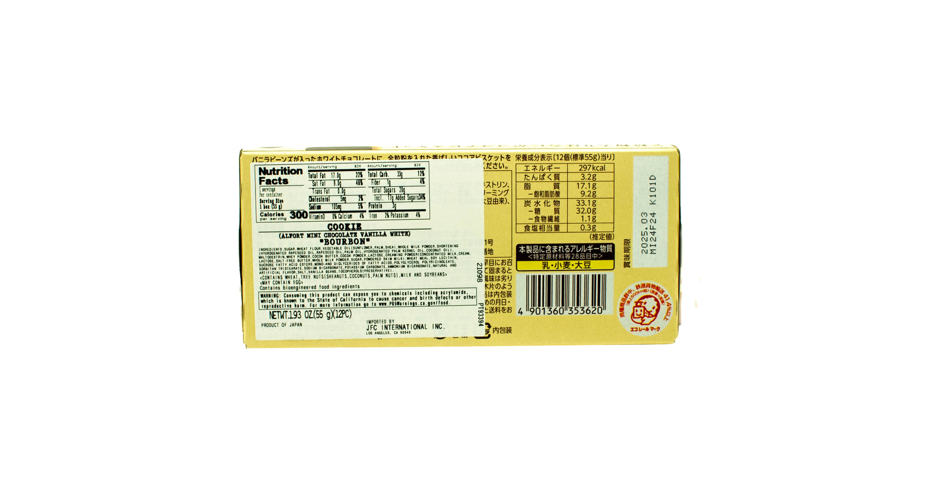 Bourbon's Alfort Mini Chocolate Vanilla White biscuits are a delightful Japanese confection that pairs aromatic cocoa biscuits with a layer of smooth white chocolate infused with real vanilla seeds. Each biscuit features a distinctive sailboat design, adding to its charm.