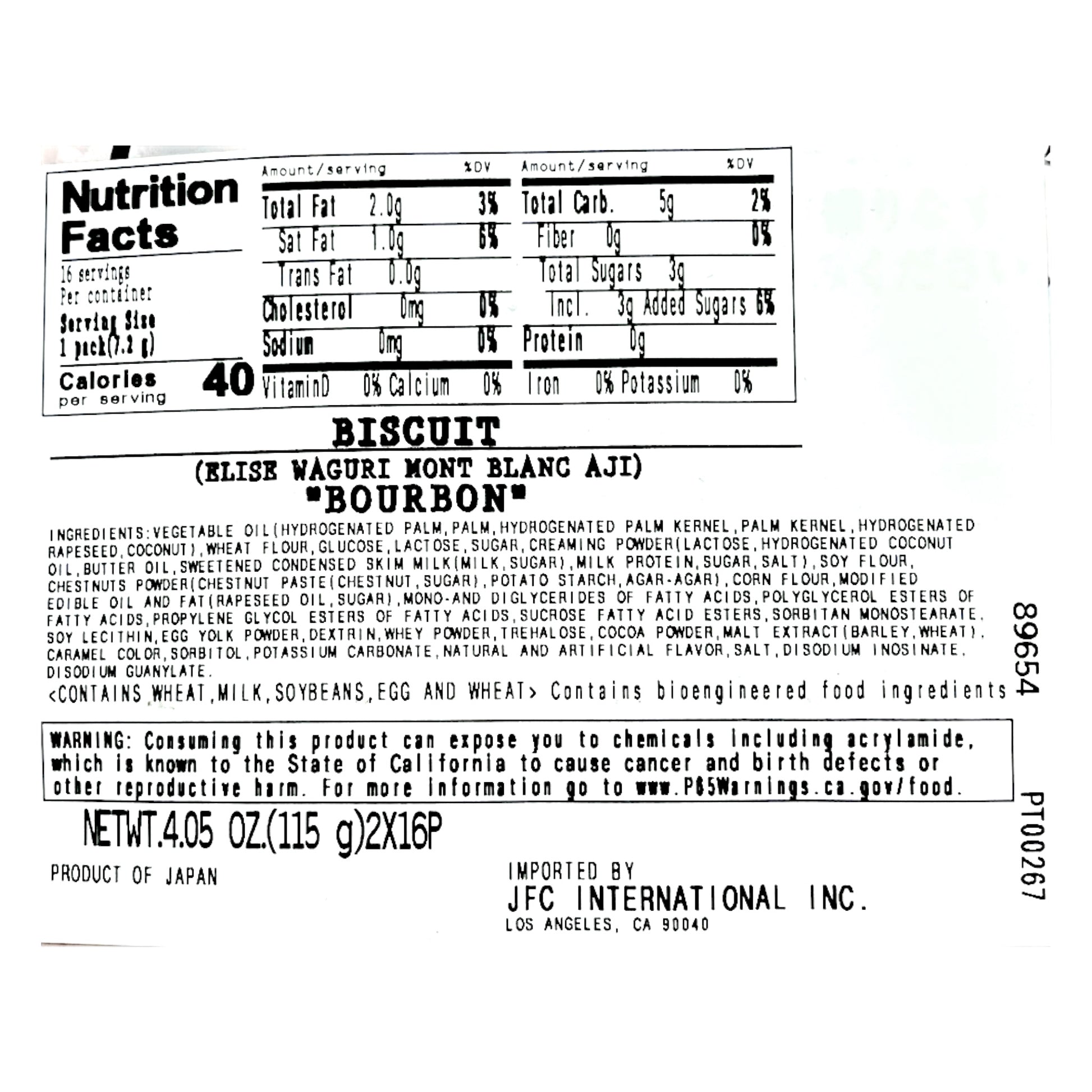 In summary, the Bourbon Elise Waguri offers a delightful taste of Japanese confectionery, combining the traditional flavor of Japanese chestnuts with the lightness of wafer cookies, making it a treat for those seeking authentic Japanese flavors.