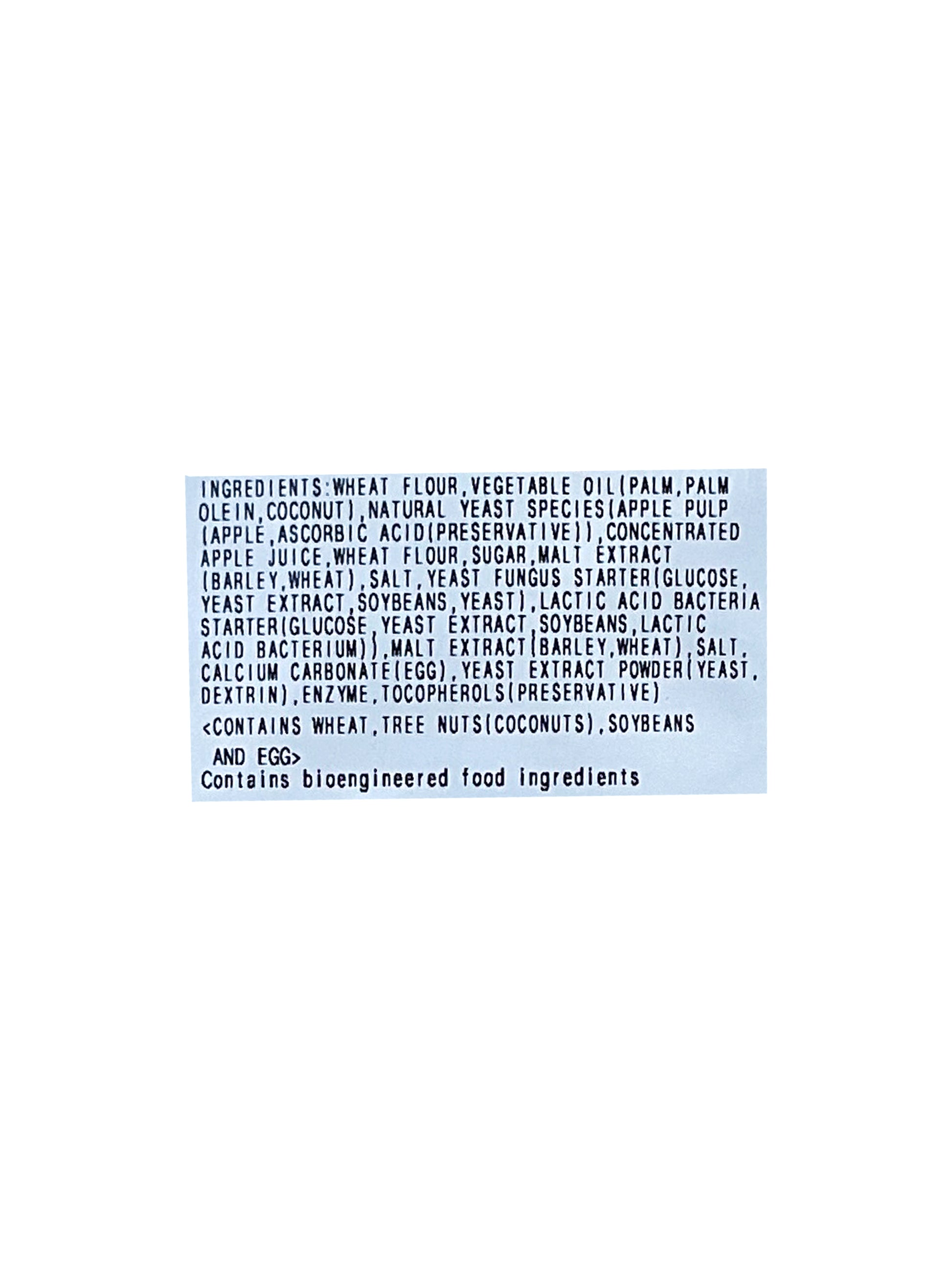 Ingredients: The crackers are made from wheat flour, palm oil, and natural yeast species, including apple pulp, concentrated apple juice, wheat flour, sugar, malt extract (malted barley), salt, and yeast fungus starter.