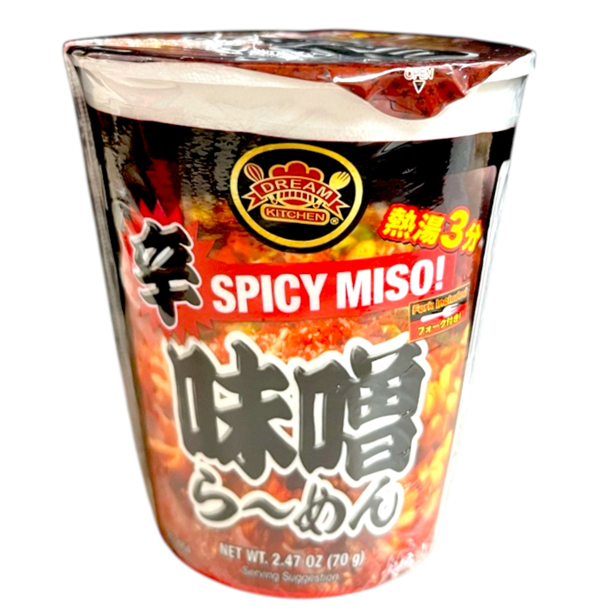 Enjoy the bold and savory taste of Dream Kitchen Spicy Miso Ramen Cup, perfect for a quick and flavorful meal anytime.