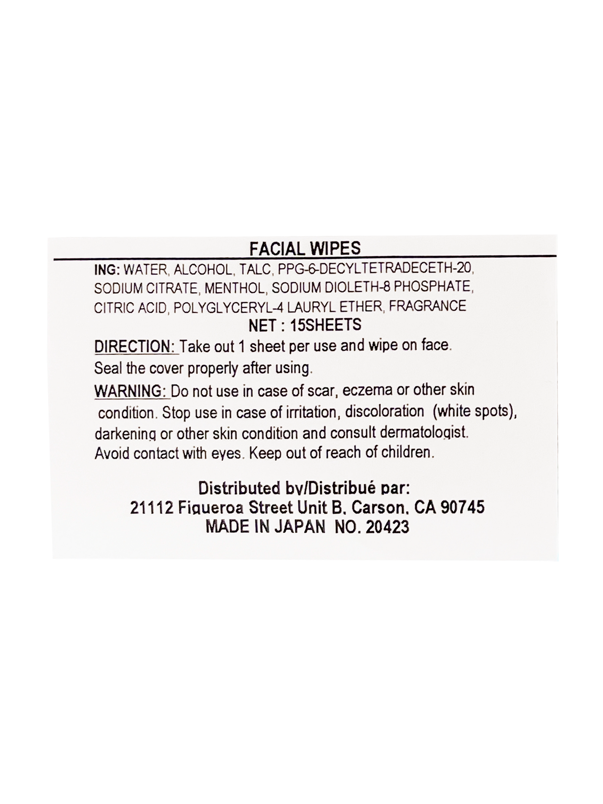 Product Name: Facial Wipes