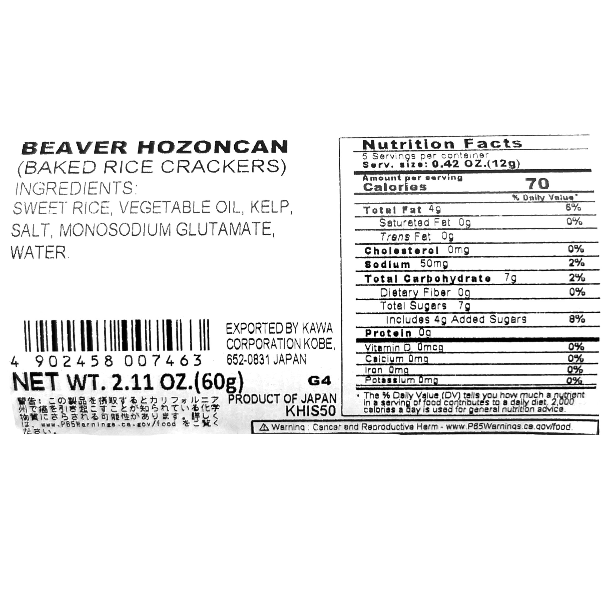 Product Name: Beaver Hozon Can Baked Rice Crackers