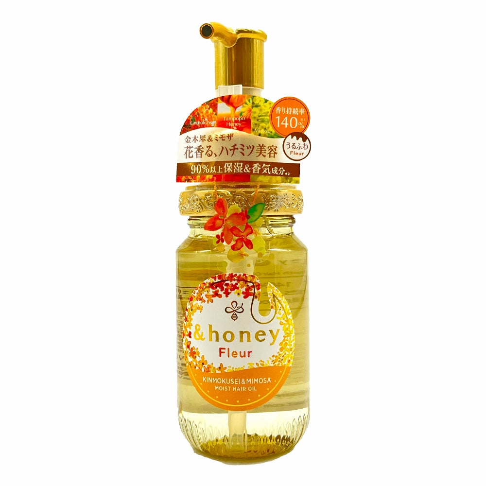 &honey Fleur Kinmokusei & Mimosa Moist Hair Oil 3.4 fl oz is a nourishing hair oil that combines the delicate fragrances of kinmokusei (sweet osmanthus) and mimosa with deeply moisturizing ingredients. Infused with natural honey and a blend of hydrating oils, this luxurious formula helps to smooth frizz, add shine, and restore moisture to dry, damaged, or frizzy hair. It provides long-lasting hydration, leaving hair soft, silky, and more manageable without weighing it down. The 3.4 fl oz size is perfect for daily use, offering a light, fragrant touch and silky-smooth results.