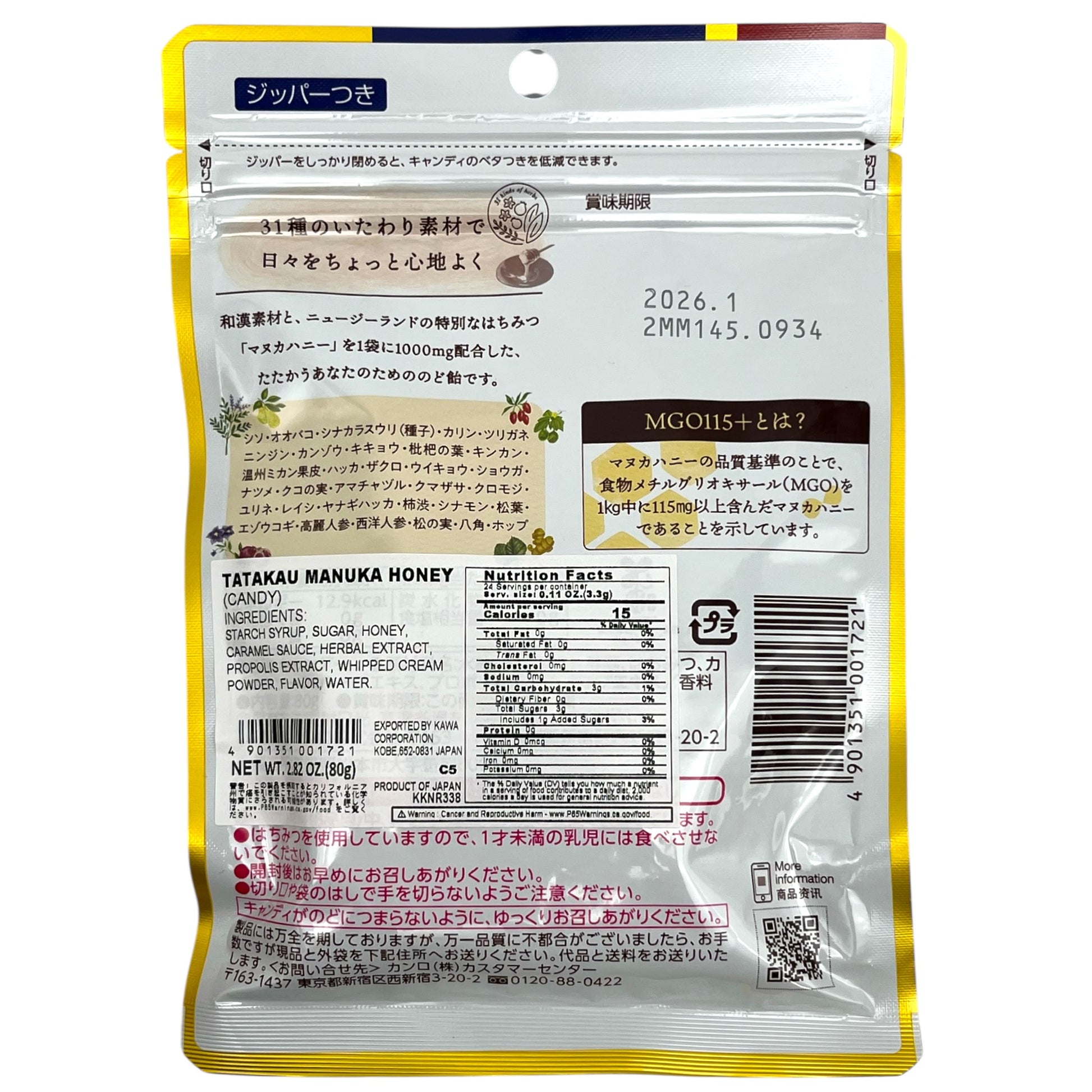 Experience the natural sweetness and soothing benefits of Kanro Tatakau Manuka Honey Candy, a premium Japanese candy.