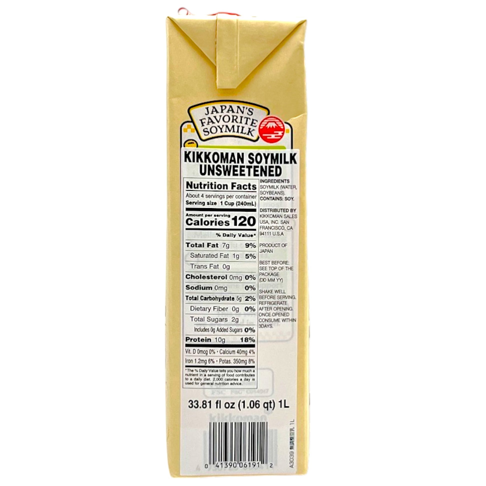 Kikkoman Soymilk Unsweetened 33.82 fl oz features smooth and creamy unsweetened soymilk made from high-quality soybeans. Perfect for those who prefer a natural, slightly nutty flavor without added sugar, it’s versatile for drinking or cooking.