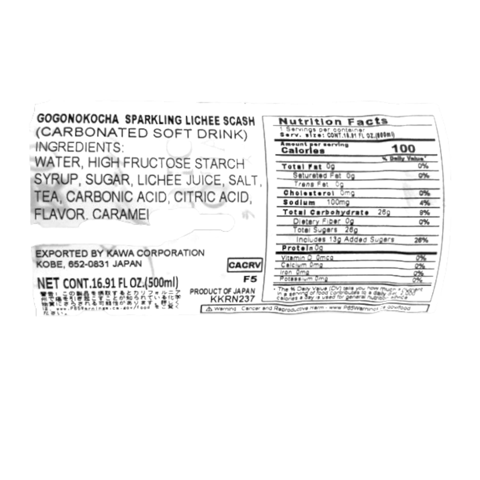 Kirin Gogo No Kocha Sparkling Litchi Squash 16.91 fl oz is a refreshing sparkling beverage with the sweet and floral flavor of litchi. Perfect for a revitalizing drink anytime, it offers a fizzy and fruity taste experience.