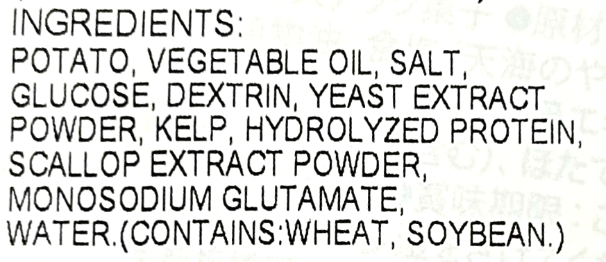 Flavor Profile: Seasoned with a combination of scallop, kelp, and Tenbi grilled salt, offering a savory umami taste that enhances the natural flavor of the potatoes.