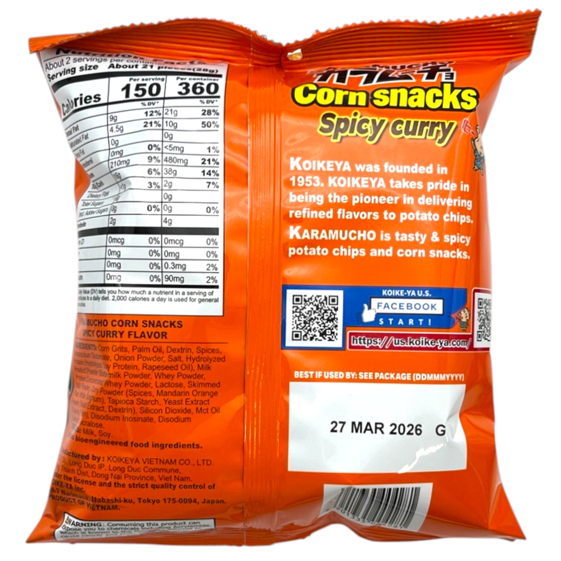 Experience the irresistible combination of crunch, spice, and savory curry flavor with Koikeya Karamucho Corn Snacks Spicy Curry.