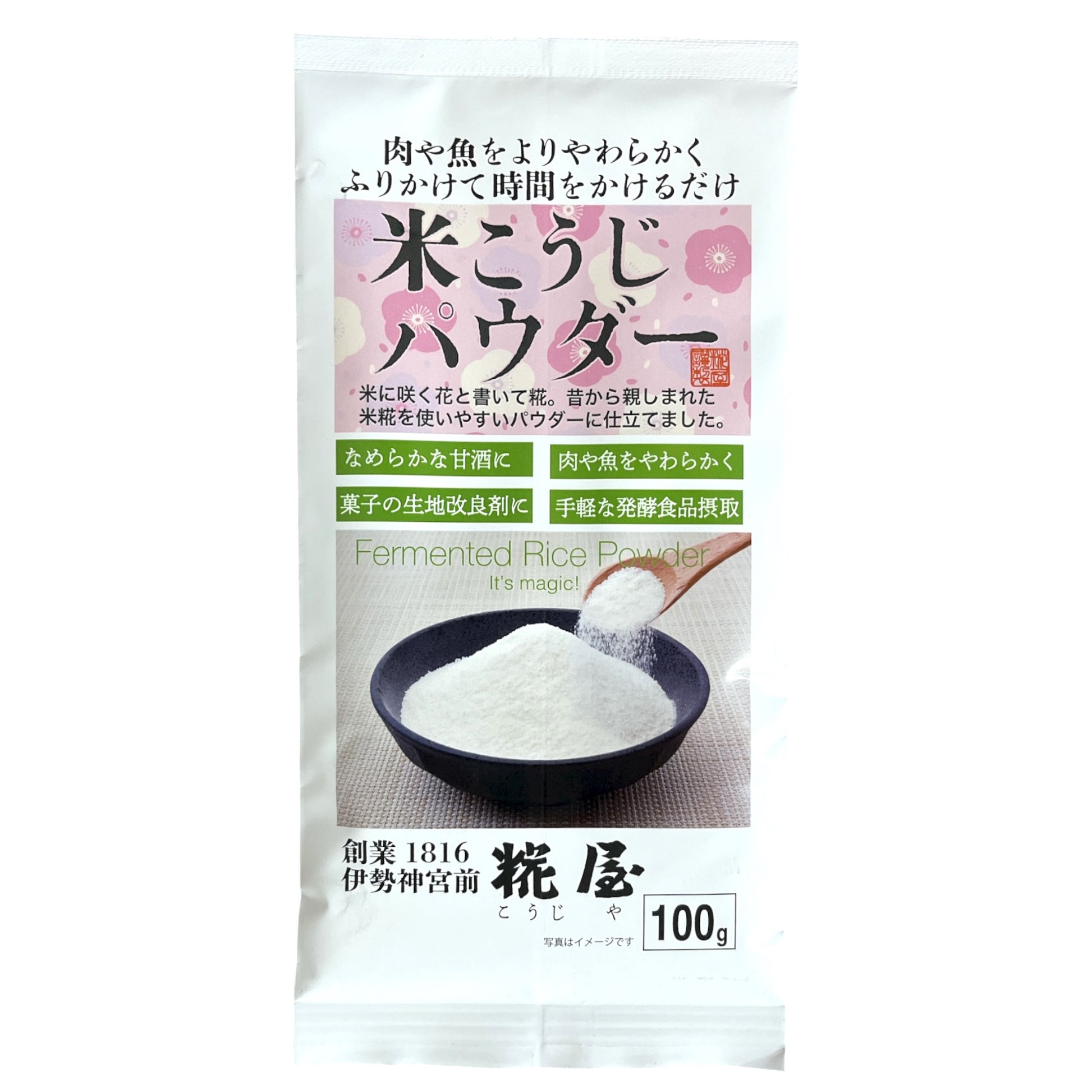 Kojiya Kome Koji Powder Dried Malted Rice 3.53 oz is a traditional Japanese ingredient made from steamed rice inoculated with koji mold. This versatile powder is used to create fermented seasonings and enhances natural umami in cooking.