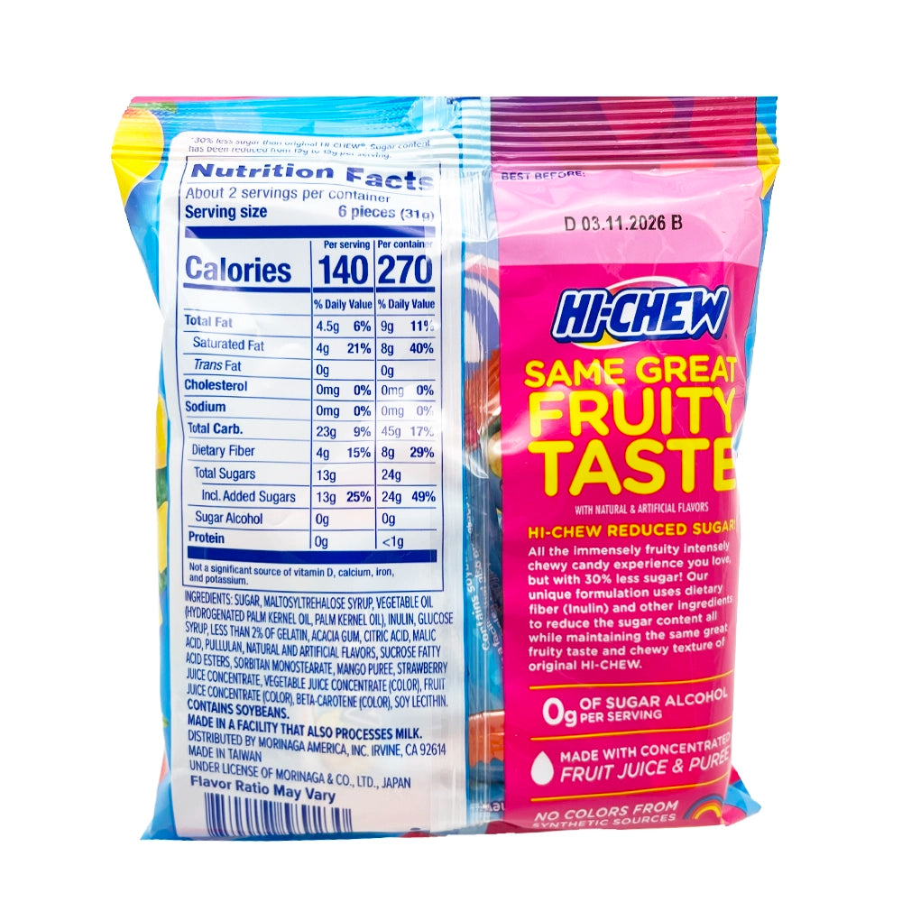Morinaga Hi‑Chew Reduced‑Sugar Mango & Strawberry offers the iconic chewy candy experience with 30% less sugar. Featuring dual layers of intensely fruity mango and strawberry, this treat delivers the same beloved texture and flavor fans expect—now in a lighter, guilt-free format.