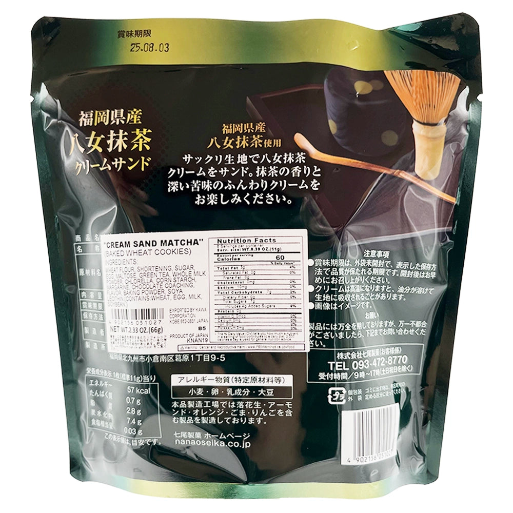 2.33 oz (66 g) pack of Nanao Matcha Cream Sand Baked Wheat Cookies